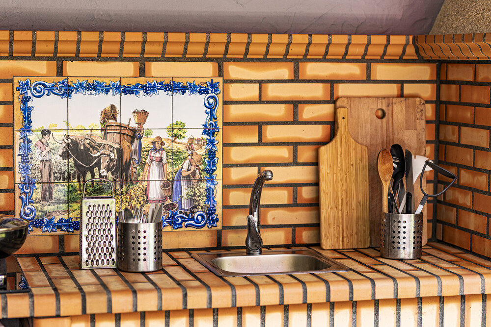 Anschließend an das Haus finden Sie eine Terrasse mit Luxus-Außenküche, ausgestattet mit Kühlschrank, Gasherd mit 4 Gasbrennern. Und BBQ.