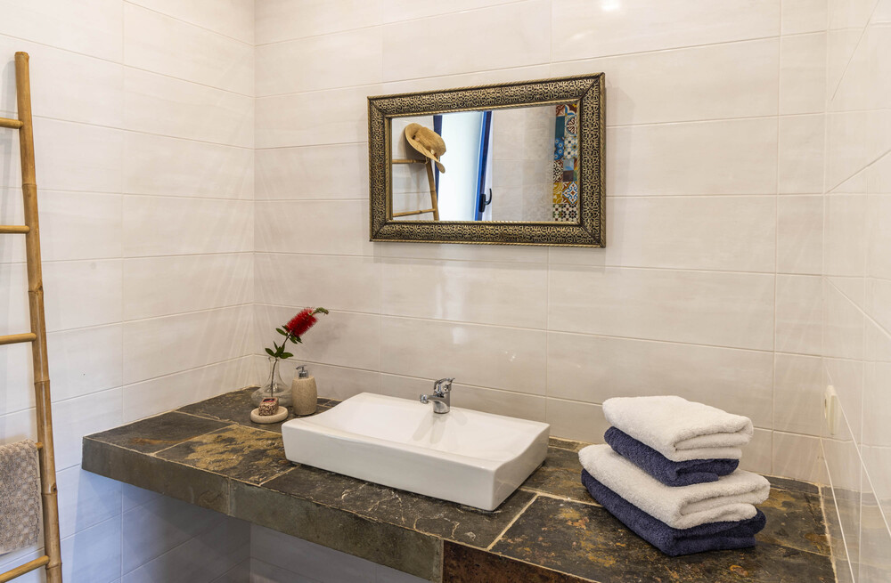 Die Schlafzimmer. Casa do Sobreiro hat 2 Schlafzimmer, jedes mit geräumigem Badezimmer " en Suite ": Einlauf-Dusche, Waschbecken, Toilette. Ein Schlafzimmer hat ein Doppelbett ' Boxspring: 1.60 X 2.00. Das andere hat 2 Einzelbetten: 90 X 2.00. Ein drittes Bett wäre möglich.