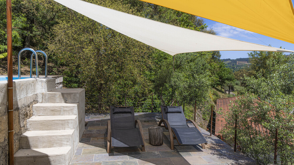 Von Ihrem 'eigenen' Garten aus haben Sie eine weite Aussicht über das Tal des Tamega-Flußes, über die tiefer gelegenen Terrassen und übers Dorf Atei in der Ferne.