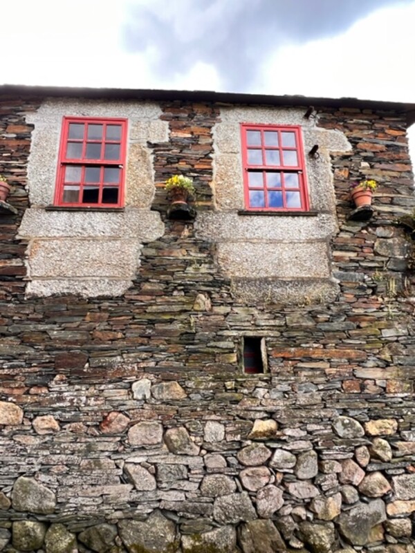 De huizen van Quintandona zijn niet zomaar gebouwd; ze zijn gemaakt van het lokale materiaal genaamd xisto, ofwel leisteen.