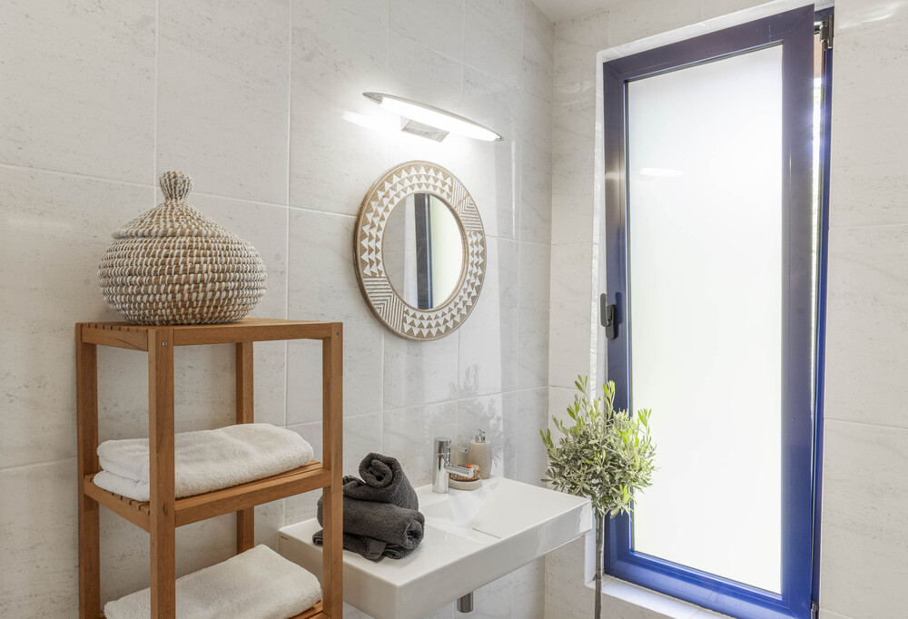 In de badkamers een heerlijk ruime inloopdouche, wastafel met spiegel en fohn en toilet.